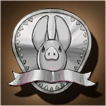 This badge features the likeness of the pig that escaped indolence.