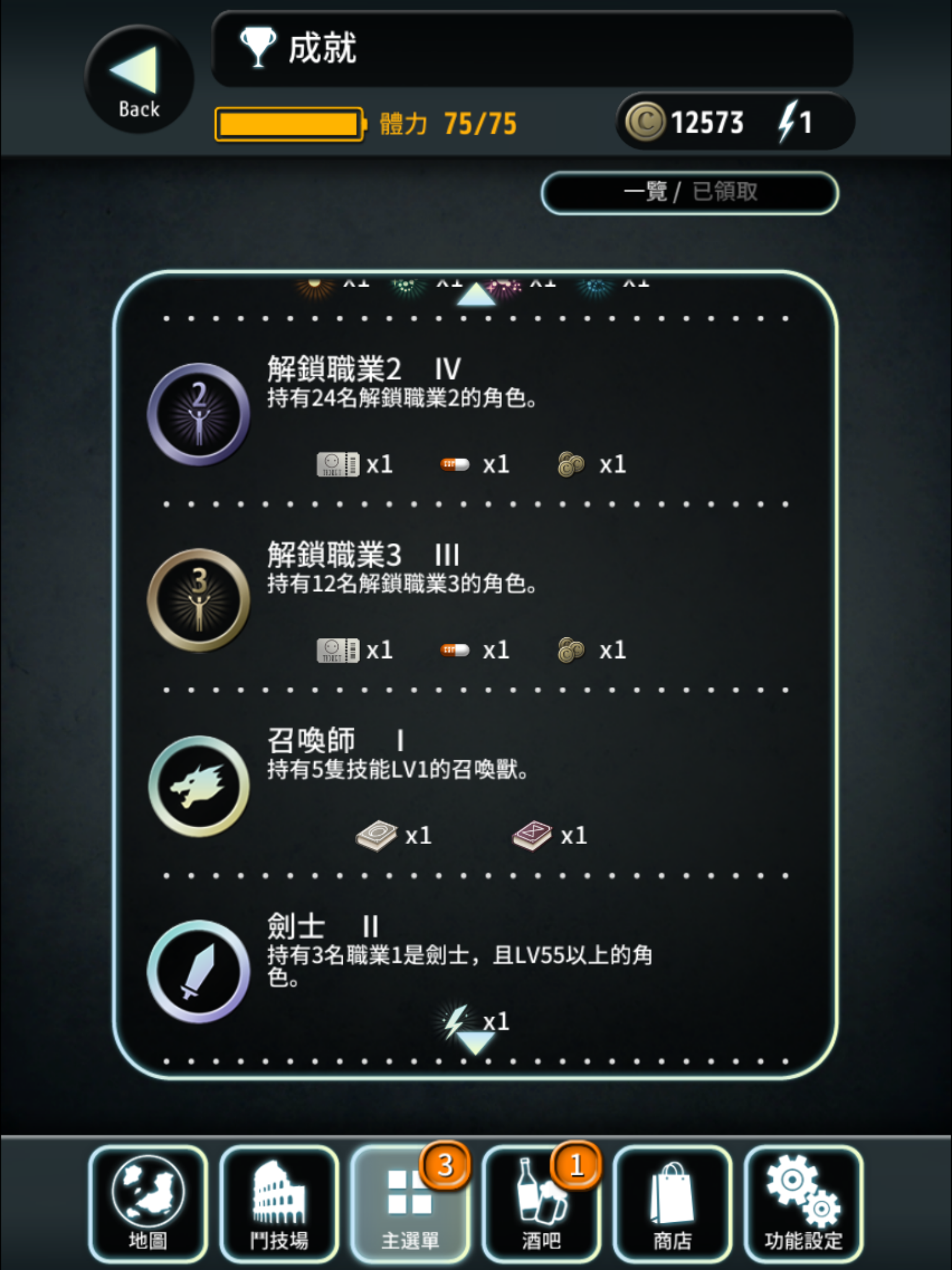 在主選單進入「成就」就可以看到目前待進行的成就,也可以看到「已領取」的成就。
